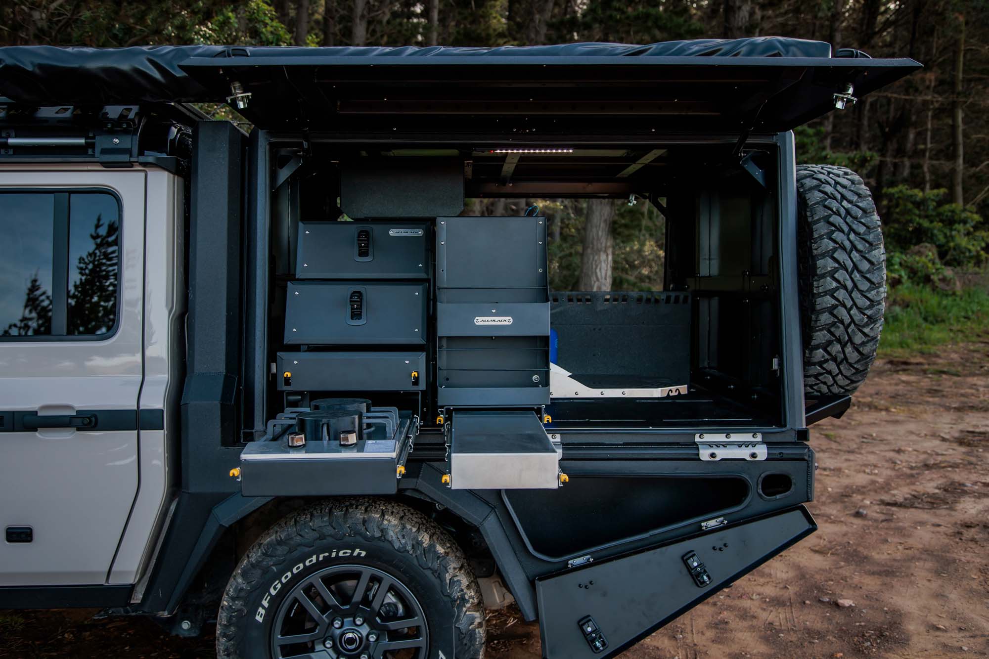The addition of Alublack tray systems further enhances their capabilities. With options for utility, expedition, and lifestyle builds — including drawer systems, camping modules, shower setups, and side toolboxes — RHAS offers a truly tailored experience for each customer.